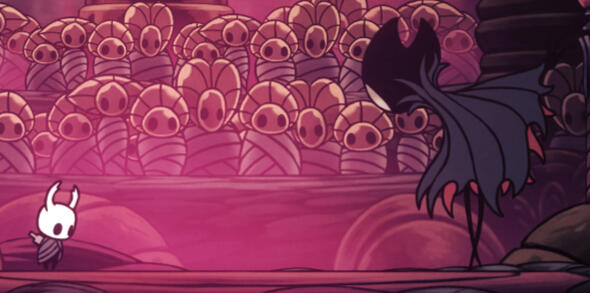 ❥ His respect extends to the Godseeker, for when summoned to do battle with the Knight before her, he shall again bow towards her. Dreamnailing him shows Grimm is in fact delighted to be in Godhome, viewing it a pleasure to take part in the Seekers quest to find the strongest creature in Hallownest.